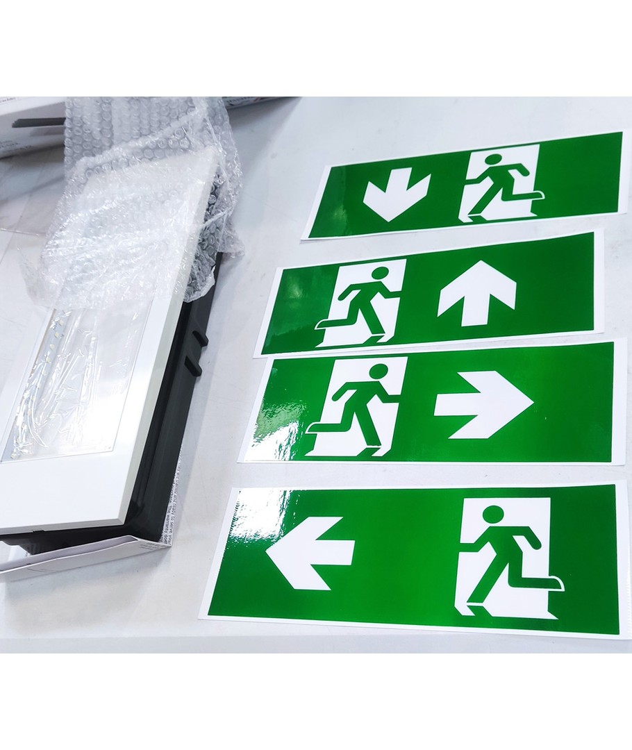 Dette exit-skiltet leveres med inkludert batteri og piktogrammer, som sikrer at du har alt du trenger for en rask og enkel installasjon. Med batteribackup kan skiltet forbli opplyst selv i tilfelle strømbrudd, noe som sikrer nødutgangsvisningen under alle forhold.