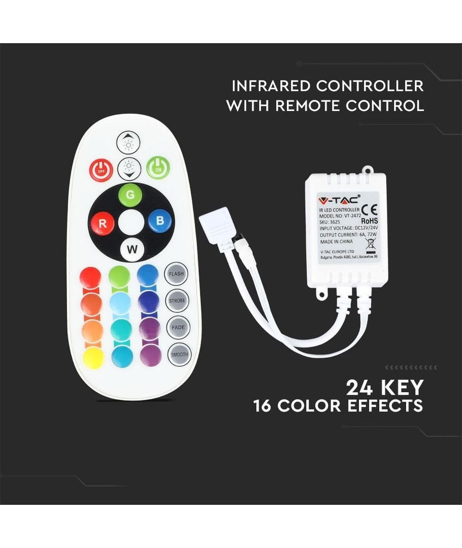 RGB kontroller for 12V / 24V LED RGB strips.
