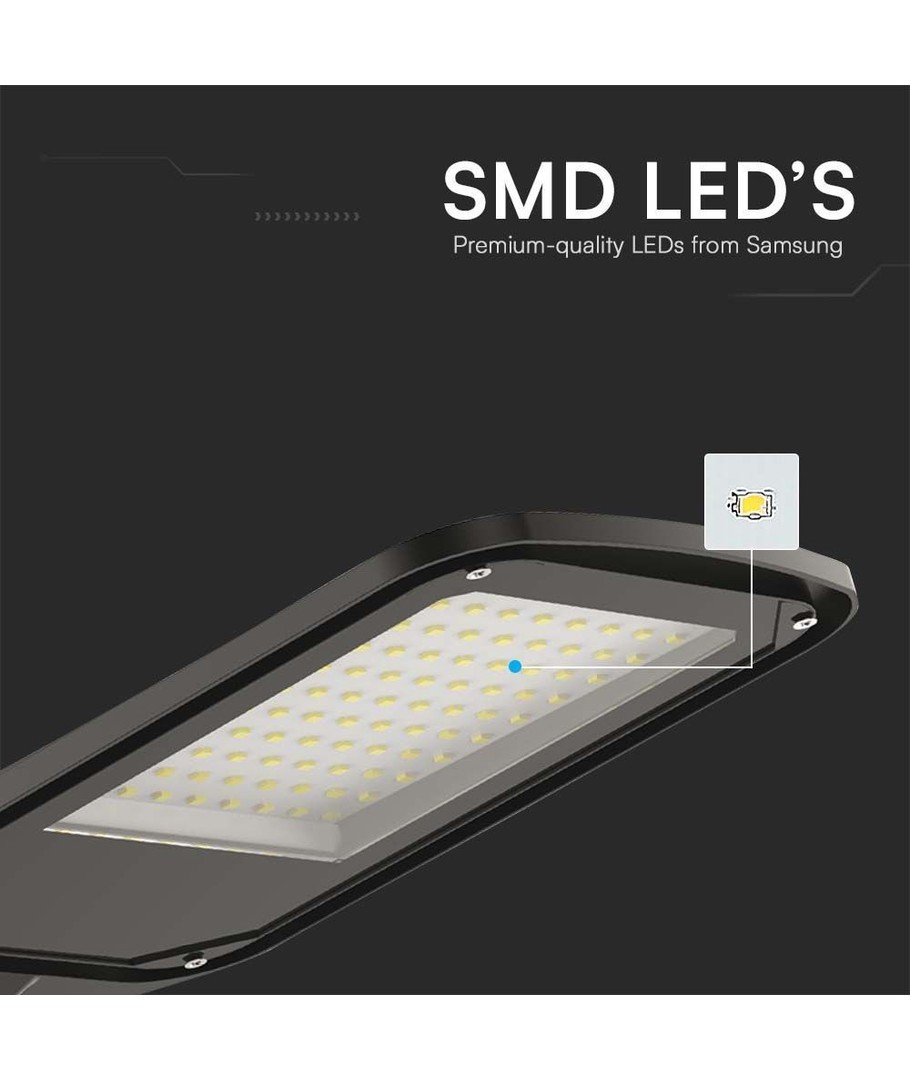 Med en integrert lyskilde sparer du tid og krefter, da alt du trenger er inkludert i én enhet. Dette V-Tac 100W LED Gatelyset kombinerer høy kvalitet med brukervennlighet, perfekt for enhver utendørs belysningsløsning.