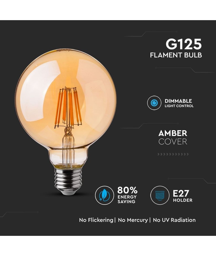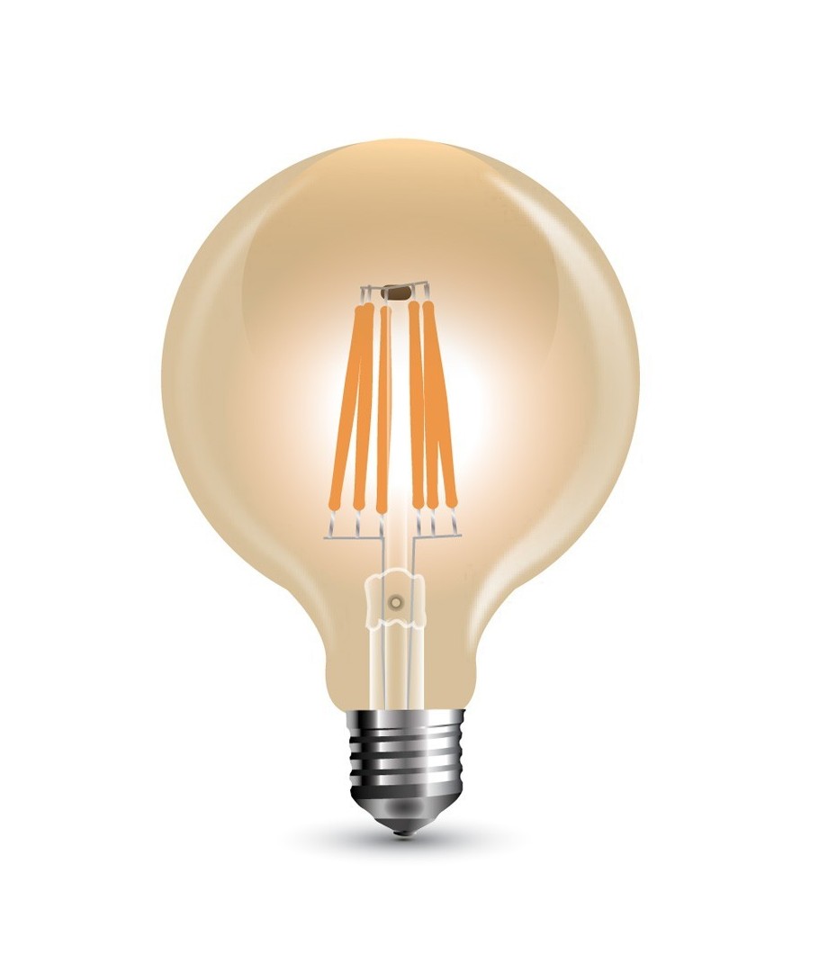 Gjør interiøret ditt levende med vår V-Tac 8W LED globe pære, en perfekt erstatning for tradisjonelle 65W lyspærer. Med sine avanserte karbon filamenter og moderne teknologi, kombinerer denne pæren et vintage-utseende med høy effektivitet. Perfekt for enhver setting som krever både stil og funksjonalitet.
