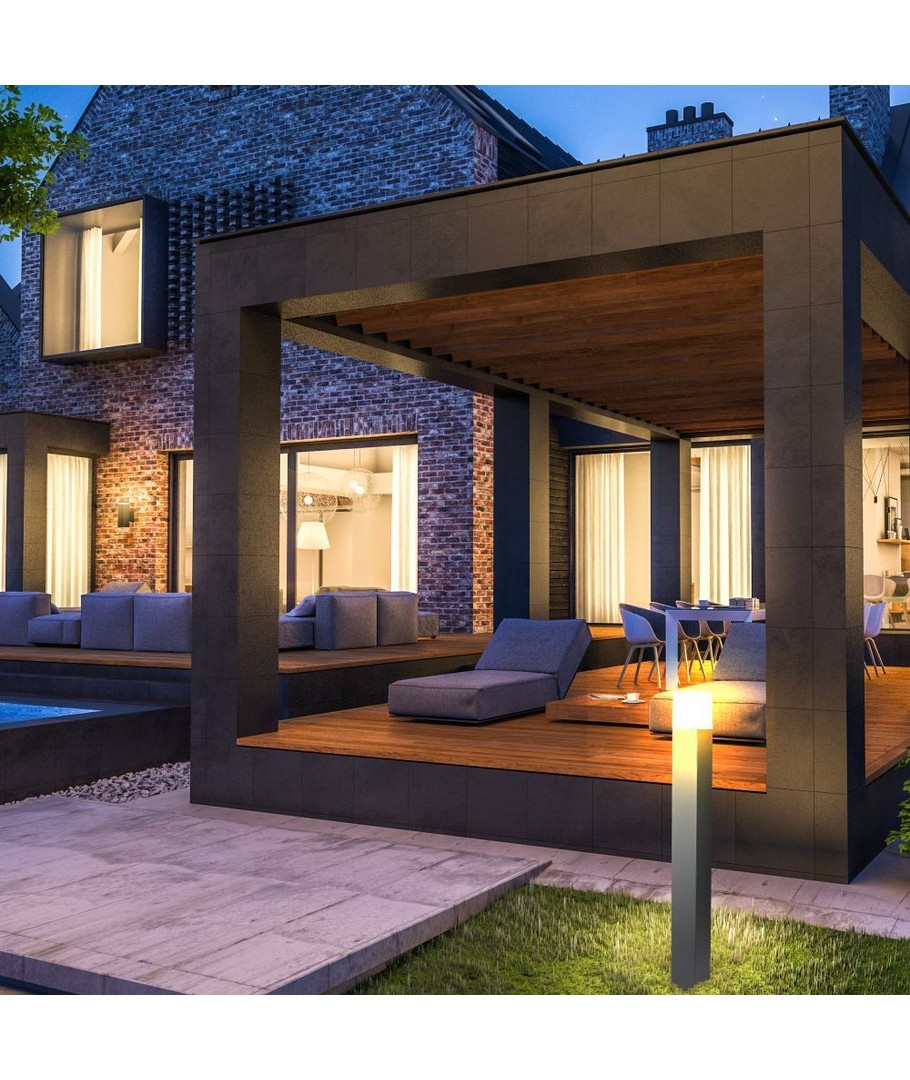 Den stilrene firkantede designet gjør denne lampen til et attraktivt tillegg til enhver hage, oppkjørsel eller terrasse, og vil komplementere moderne arkitektur med sin slanke estetikk.
