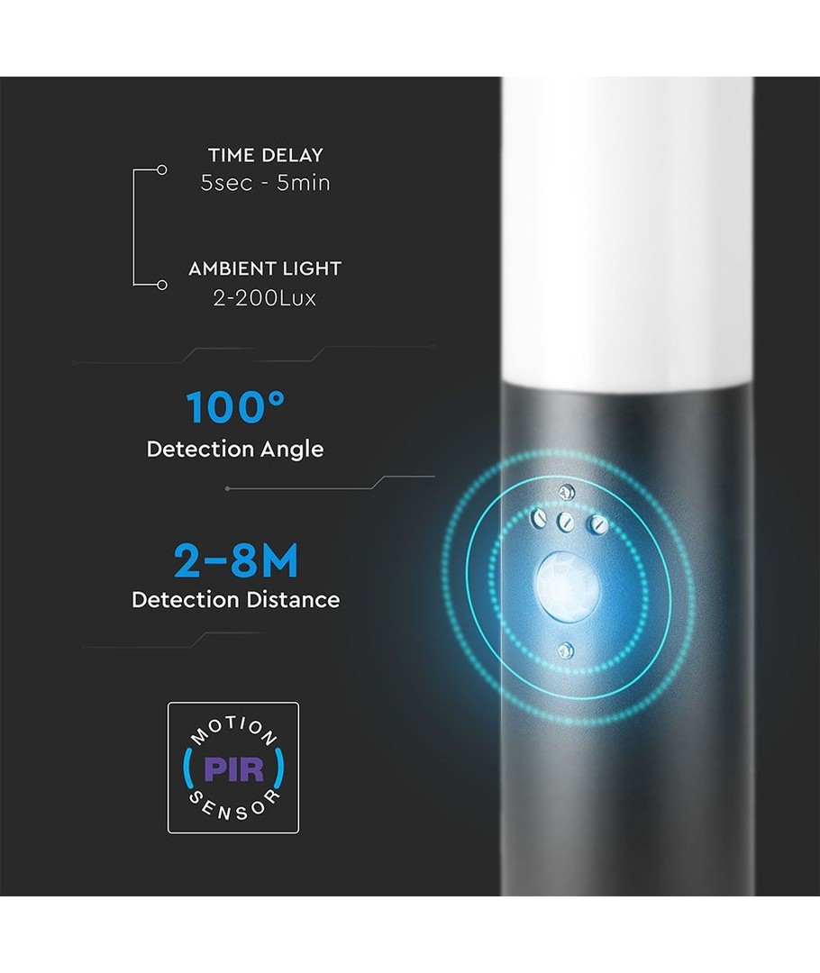 110 cm, IP44 utendørs, PIR sensor, E27 fatning, uten lyskilde