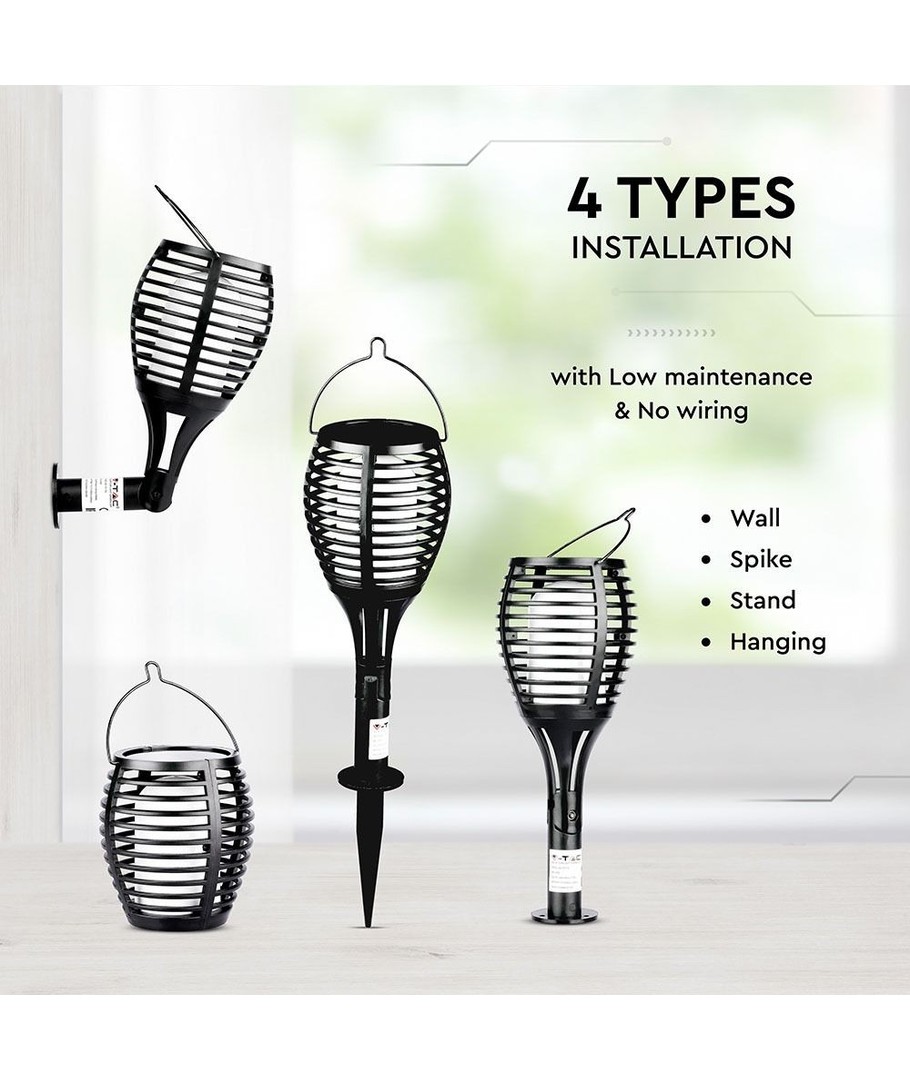 Utstyrt med en imponerende flammeeffekt, simulerer lampen et naturlig, varmt lys som skaper en innbydende atmosfære for enhver utendørs arrangement. Denne funksjonen gjør den ideell for å skape en koselig og varm stemning i alle hagefester, middager eller kveldsstunder.