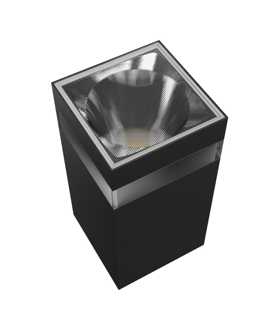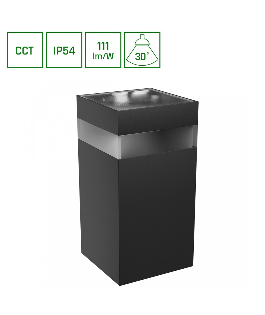 Den moderne sort finishen og det firkantede designet gir et sofistikert preg som enkelt komplimenterer alle typer fasader og arkitektur. Lampens design og dimensjoner gjør den enkel å integrere i enhver utendørs setting uten å ta opp unødig plass. Videre er den lett å installere med direkte tilkobling til en 230V strømforsyning, og gjør oppsettet raskt og effektivt.
