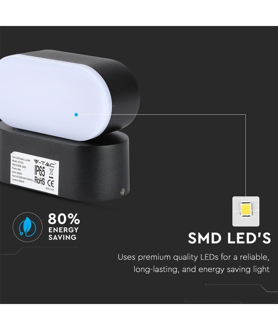 V-Tac 6W LED svart vegglampe kombinerer stil, effektivitet og holdbarhet. Med sin moderne design og avanserte belysningsteknologi, er den ideell for de som ønsker å oppgradere sitt belysningssystem med et elegant og pålitelig valg. La denne lampen være et sentralt element i utendørs belysning som gir både funksjon og estetisk appell.