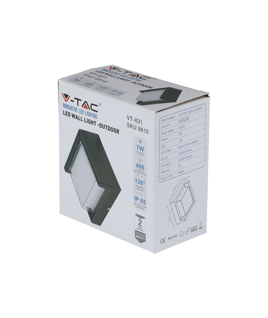 Samlet sett er denne vegglampen et stilig, praktisk og pålitelig valg for de som ønsker kvalitetsbelysning utendørs. Gjør hjemmet ditt lysere og mer innbydende med den firkantede V-Tac 7W LED vegglampen.