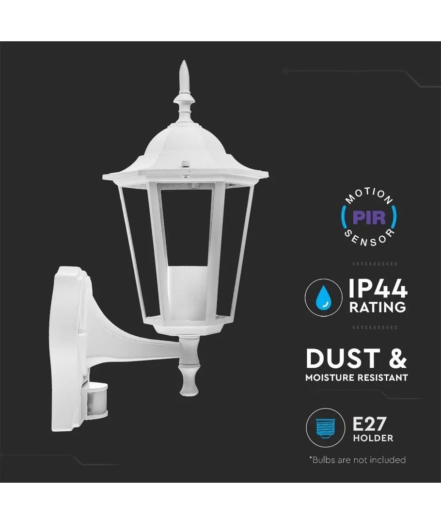 V-Tac hvit vegglampe med sensor er det perfekte tilskuddet til enhver utendørsplass, og gir både praktisk belysning og et moderne, elegant preg.