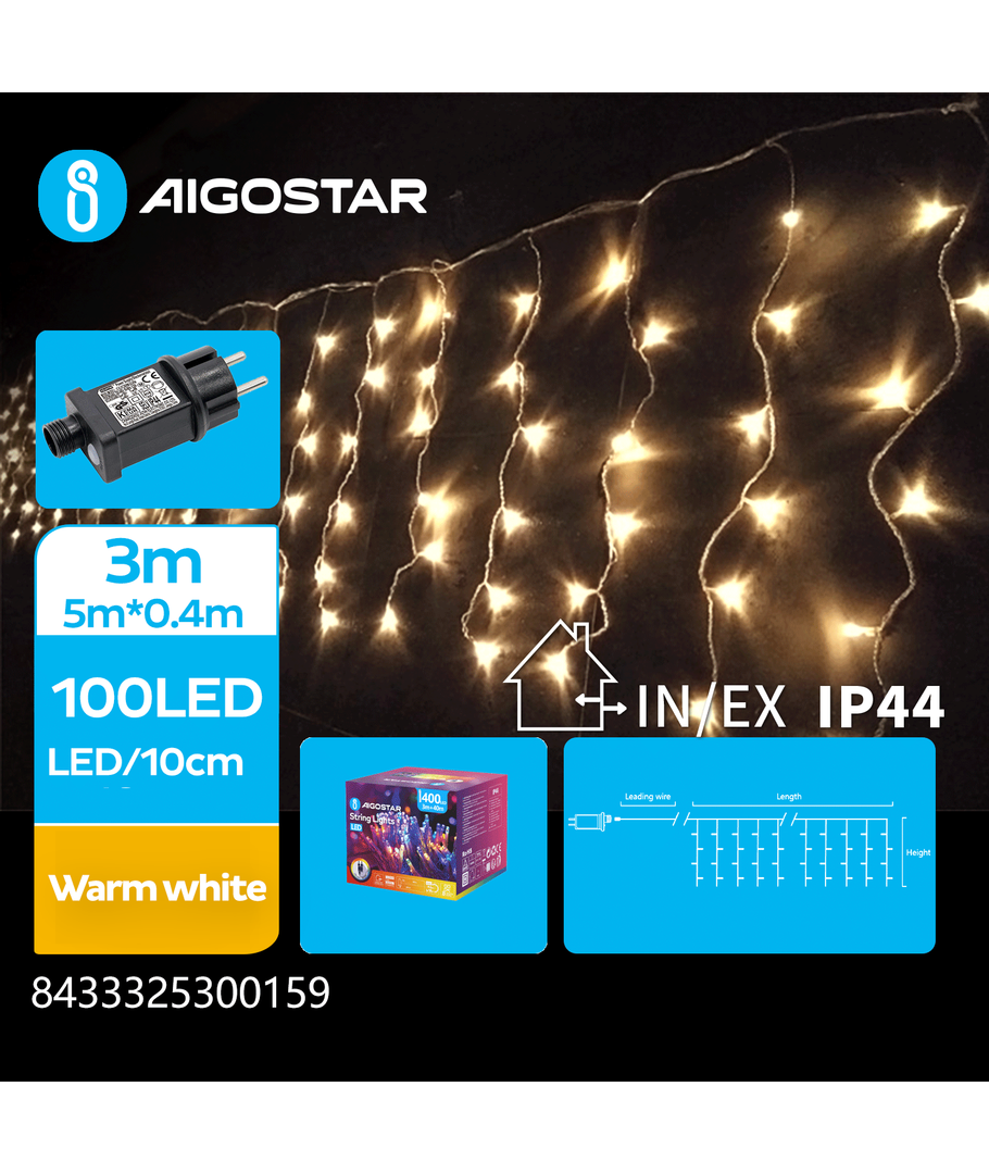 LED varm hvit lyskjede gardin består av 100 LED-lamper som gir fra seg en behagelig og varm hvit glød. Med dimensjoner på 400 x 5000 mm og et utvalg av 25 rader, kan den enkelt dekke store områder for maksimal effekt. Installeringen er enkel, og med den transparente ledningen blender den sømløst inn i enhver omgivelse.
