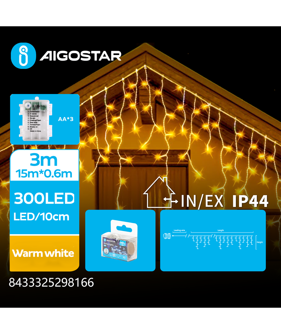 Skap en magisk stemning i hjemmet ditt med denne 15 meter lange varm hvit batteri istapp lyskjeden. Med sine 300 LED-lys fordelt på 75 rader gir denne lyskjeden en fortryllende fremtoning, perfekt for å lyse opp både innendørs og utendørs områder.