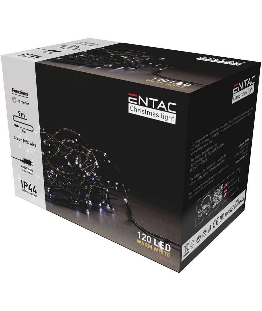 IP44, minnefunksjon, 230V, 180 LED, varm hvit