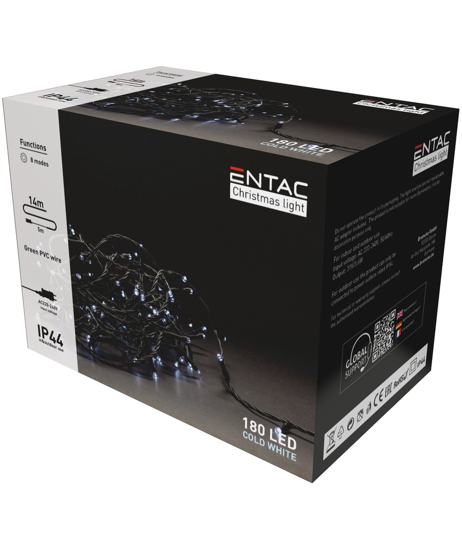 IP44, minnefunksjon, 230V, 180 LED, varm hvit