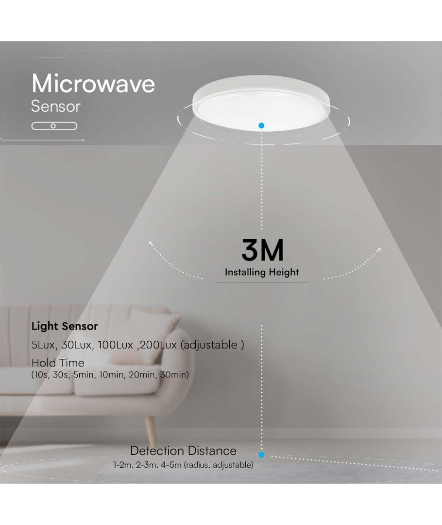 Denne lampen er utstyrt med en mikrobølgesensor, som automatisk slår lyset på ved bevegelse i rommet. Dette gjør den særdeles praktisk i rom hvor hendene ofte er opptatt, eller hvor man ønsker automatisk belysning ved bevegelser.