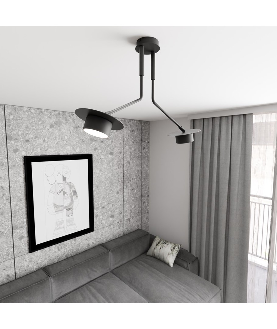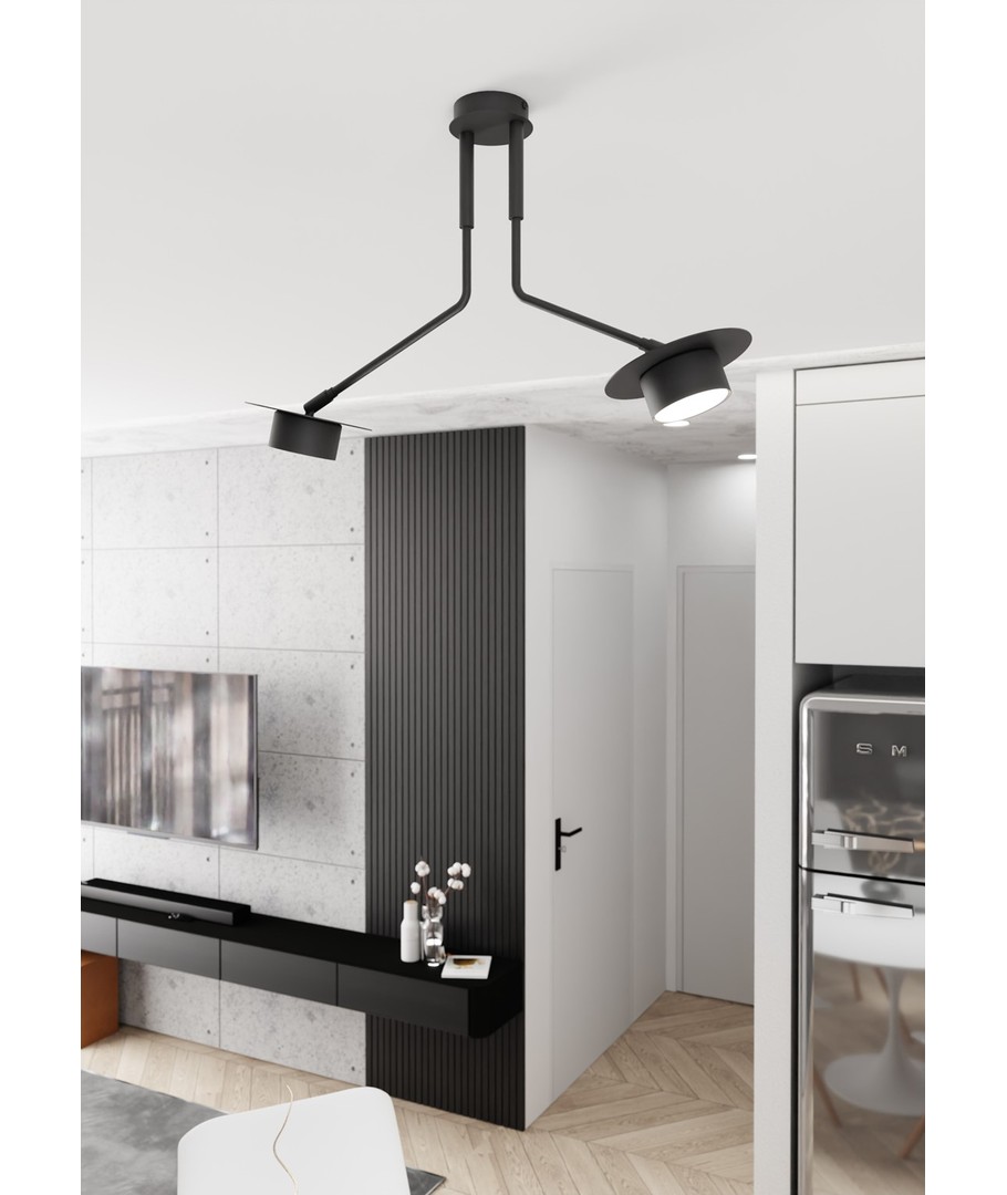 Opplev modernitet og minimalisme med Mizu 2 Sort taklampe. Inspirert av en elegant, geometrisk stil tilfører denne lampen en unik dynamikk til ethvert rom.