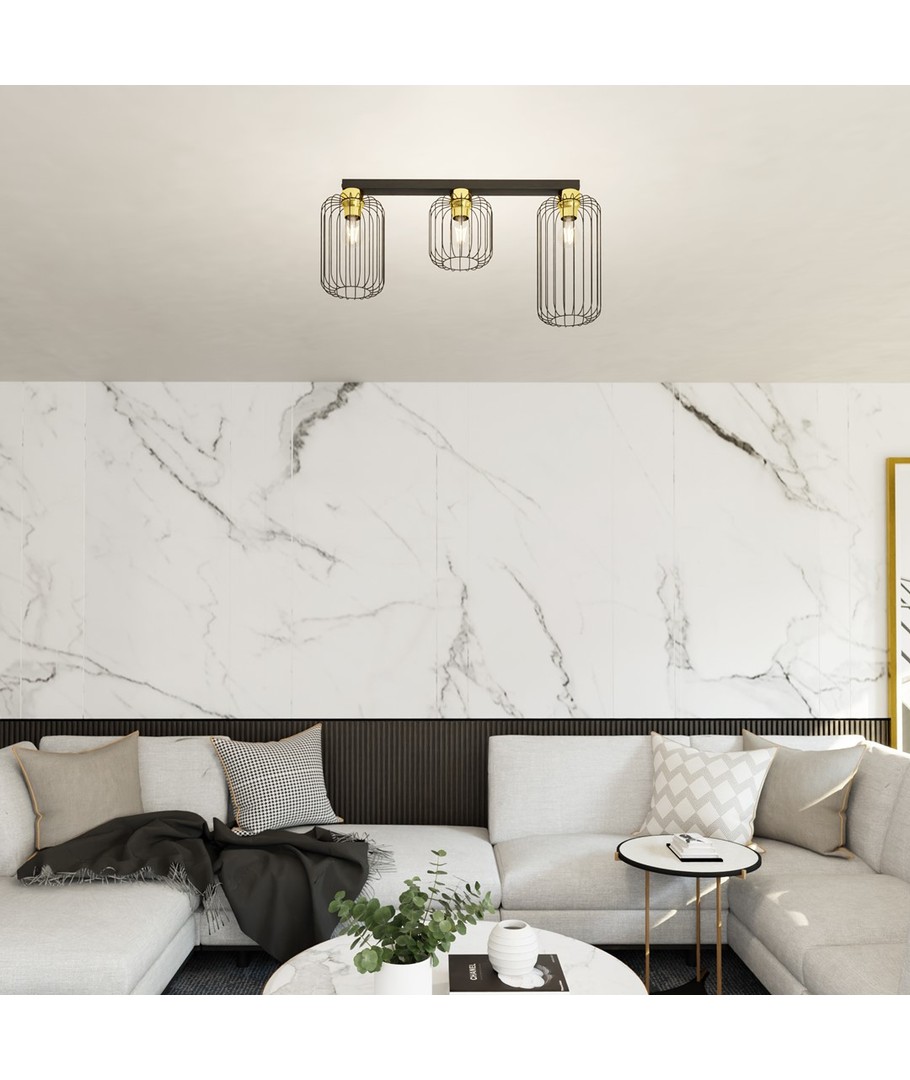 Opplev den industrielle stilen i sin reneste form med den elegante Barn 3 Sort/Gull taklampe. Denne lampen er designet for å tilføre ethvert rom en rå sjarm med sine unike wireskjermer, som skaper fascinerende lyseffekter. Laget av holdbart, pulverlakkert stål, sikrer den både lang levetid og et unikt uttrykk. Perfekt for stuen, spisestuen, kjøkkenet eller kommersielle rom som kafeer og restauranter, hvor den tilfører en autentisk loft-atmosfære.