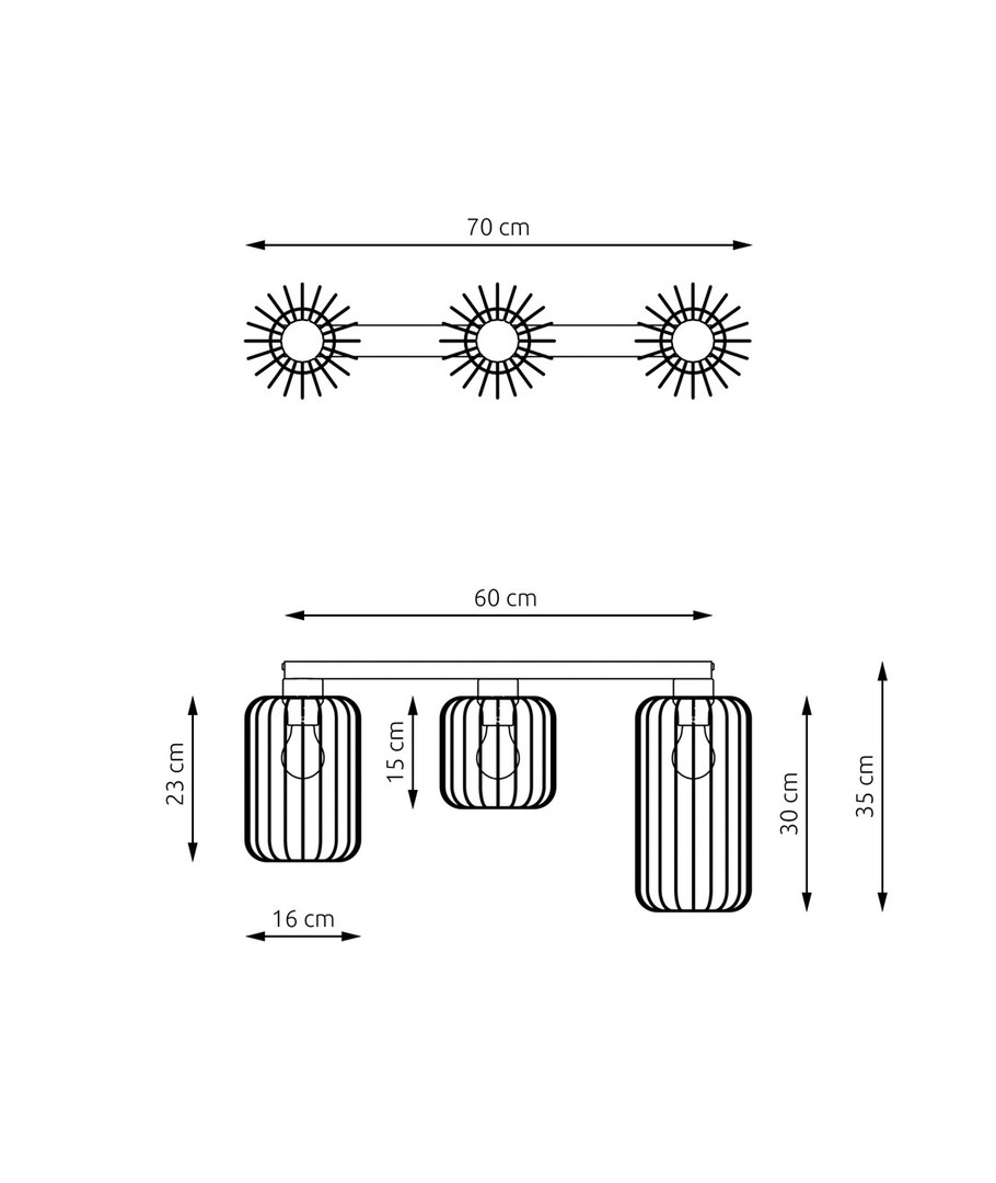 Den originale sort-gull-stilen og de smarte dimensjonene (700 x 350 x 160 x Ø160 mm) gjør lampen både praktisk og tiltrekkende, ideell for områder hvor du ønsker å sette et moderne preg uten å ta for mye plass.
