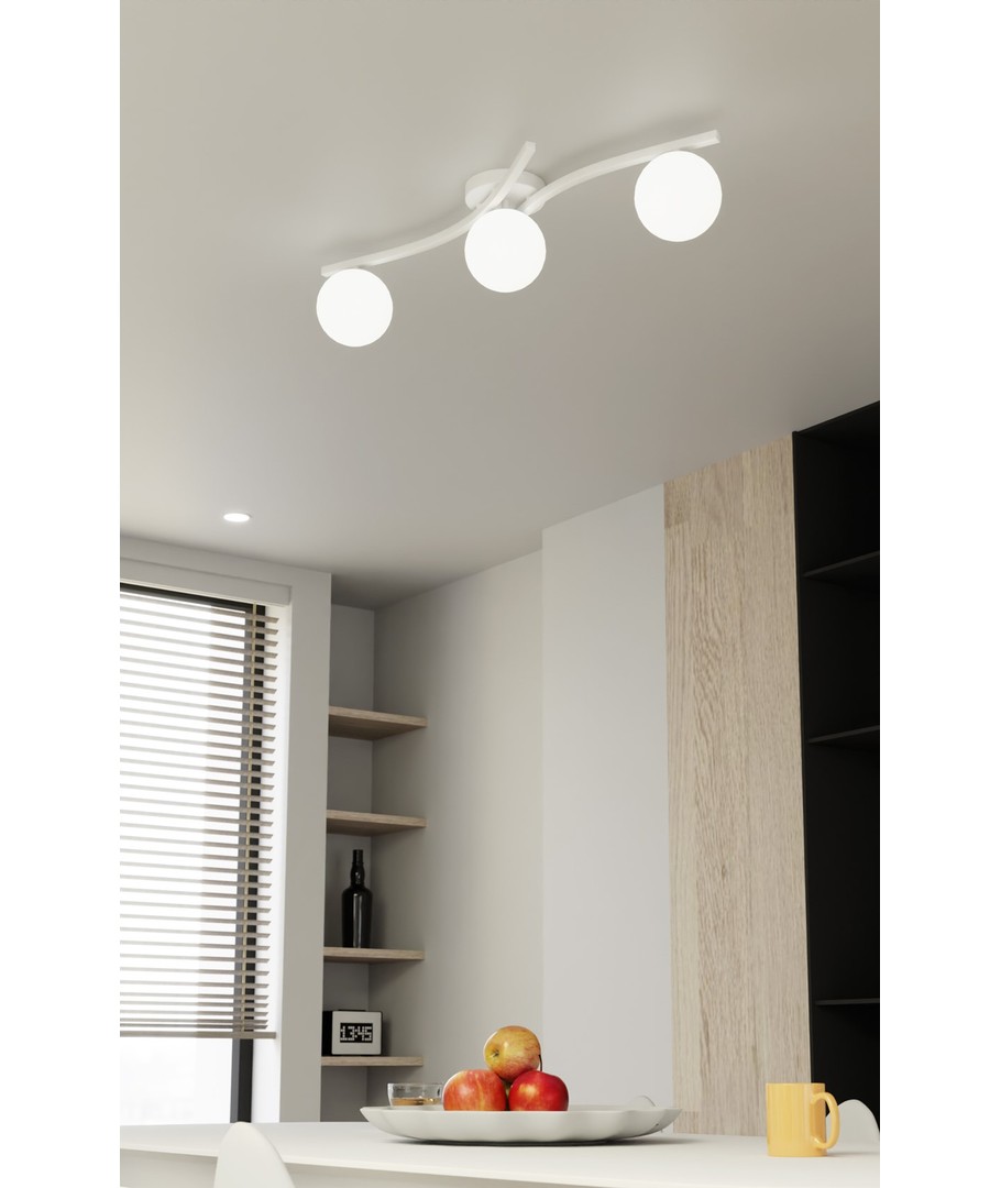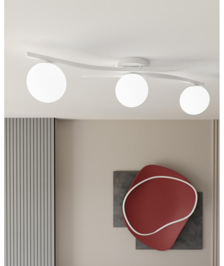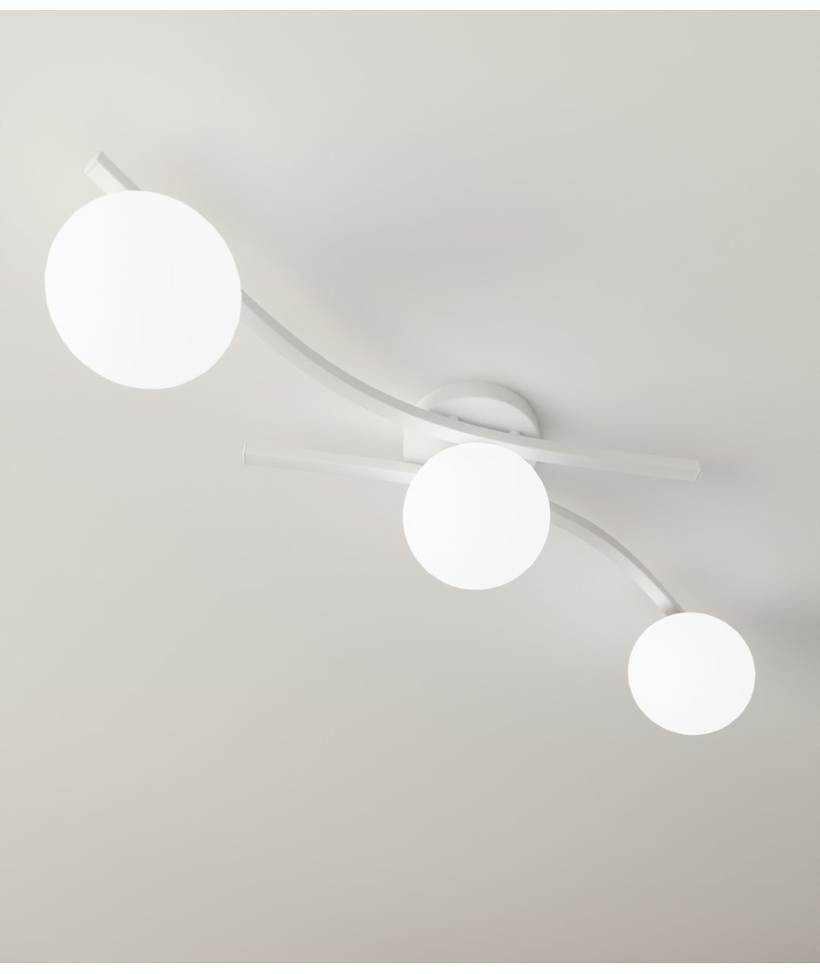 Opus 3 Hvit/Opal taklampe er innbegrepet av minimalisme og eleganse. Med sine rene linjer og myke glasskjermene bringer denne lampen en subtilitet og letthet inn i ethvert rom. Den avgir et mildt og diffust lys som skaper en behagelig atmosfære og tilfører harmoni og raffinert stil, uansett om den er hengt i en stue, spisestue eller soverom. Lampen er et ideelt valg for de som verdsetter minimalistisk design og tidløs estetikk.