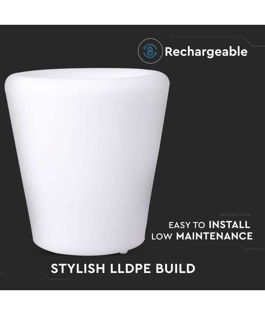 Ønsker du å tilføre en moderne og stemningsfull touch til innendørs- eller utendørsområdene dine? Denne RGB LED-potteskjuleren fra V-Tac er den perfekte løsningen. Det innovative designet kombinerer estetikk og funksjonalitet i ett.