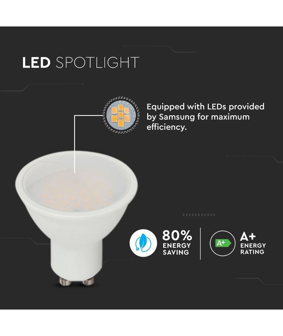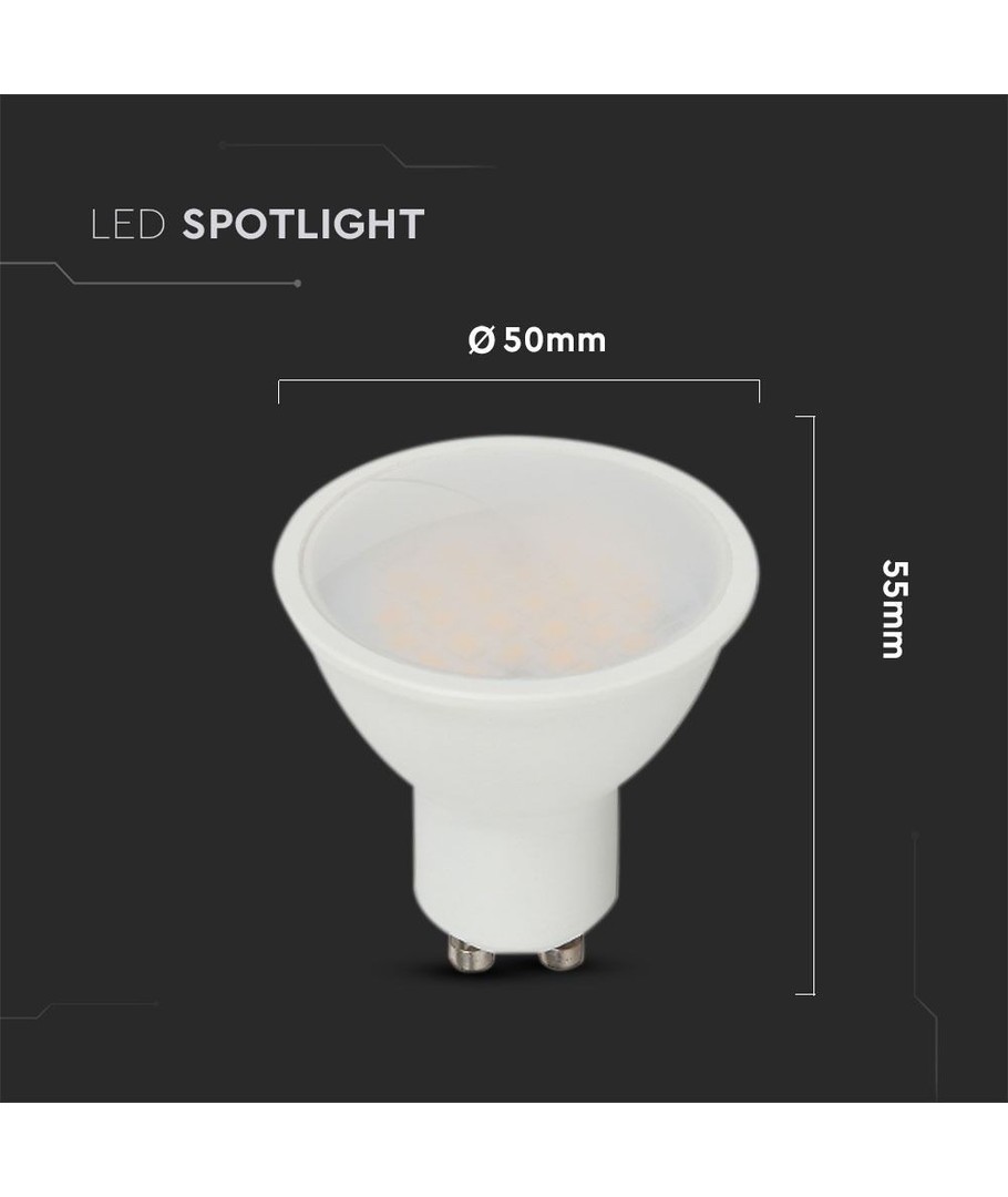 Med en kompakt størrelse på 57 x Ø50 mm, passer denne LED-spotlighten sømløst inn i de fleste lampeoppsett. Oppgrader belysningen din med V-Tac 4,5W LED spot for effektiv og stemningsfull lyssetting i alle rom.