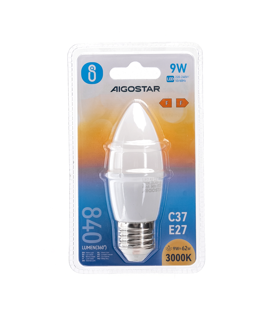 Spar minst 80%. Ved å erstatte tradisjonelle lamper med et LED-alternativ fra Aigostar, spares det umiddelbart mye energi og bidrar til en bærekraftig verden. Effektstyrken på 9W kan sammenlignes med en 65W halogenlampe.
