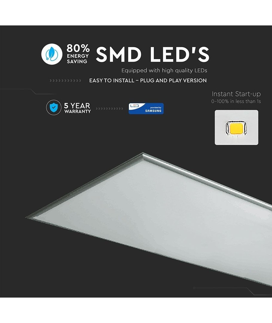 Når du velger V-Tac 120x60 LED panel, velger du kvalitet med en 5 års produsent garanti, som gir trygghet og forutsigbarhet i dine belysningsbehov.