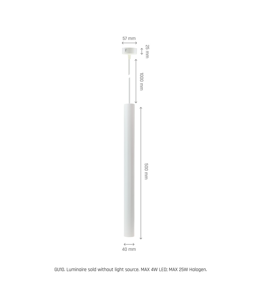 Mål: Lampens kompakte dimensjoner på 500 x Ø40 mm gjør den ideell for plassbesparende installasjoner, uten at det går på bekostning av stil eller funksjonalitet.