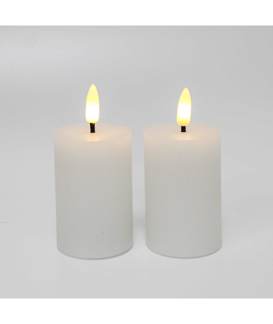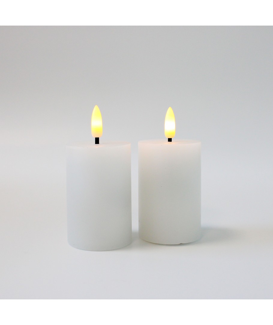 Opplev den myke og beroligende belysningen av våre LED Bloklys, som skaper en autentisk flammeeffekt uten risikoen for åpen ild. Dette settet med to hvite lys er perfekt for å tilføre en koselig atmosfære til ditt hjem.