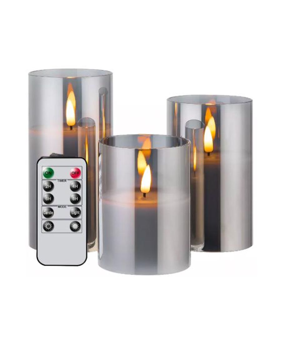 Opplev den betagende skjønnheten og stemningen fra levende lys uten risiko med vårt LED Blokklys sett i gråtonet glass. Dette elegante settet inneholder tre lys i forskjellige høyder med en realistisk flammeeffekt, som skaper en varm og innbydende atmosfære.