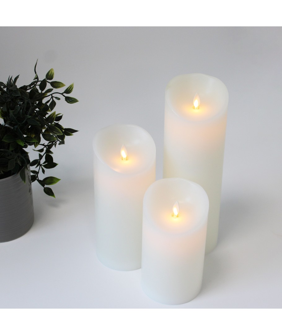 Opplev den ultimate hygge med våre vakre og virkelighetstro LED Blokklys XL, som skaper en varm og innbydende atmosfære i ethvert hjem. Dette elegante settet består av tre blokklys i forskjellige høyder, laget av ekte stearin for et autentisk utseende.