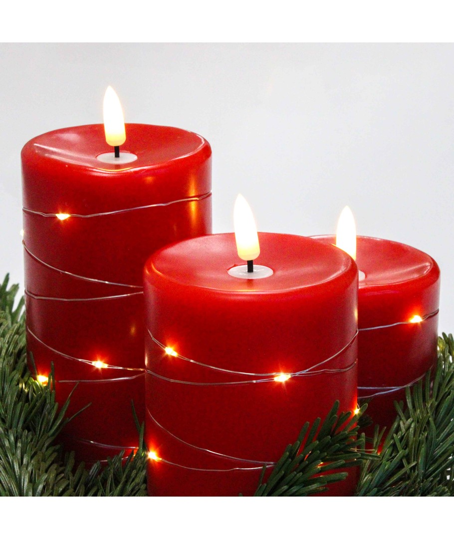 Ø7,5cm, fungerer m. fjernkontroll, ekte stearin, rød