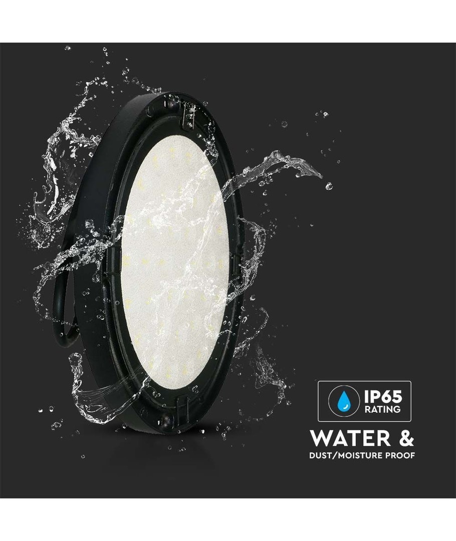 Utstyrt med en robust IP65-klassifisering, er denne LED high bay-lampen designet for å motstå vannsprut og regn. Dette gjør den svært anvendelig for utendørsbruk, i tillegg til litt tøffere miljøer som lagerhaller og fabrikker.