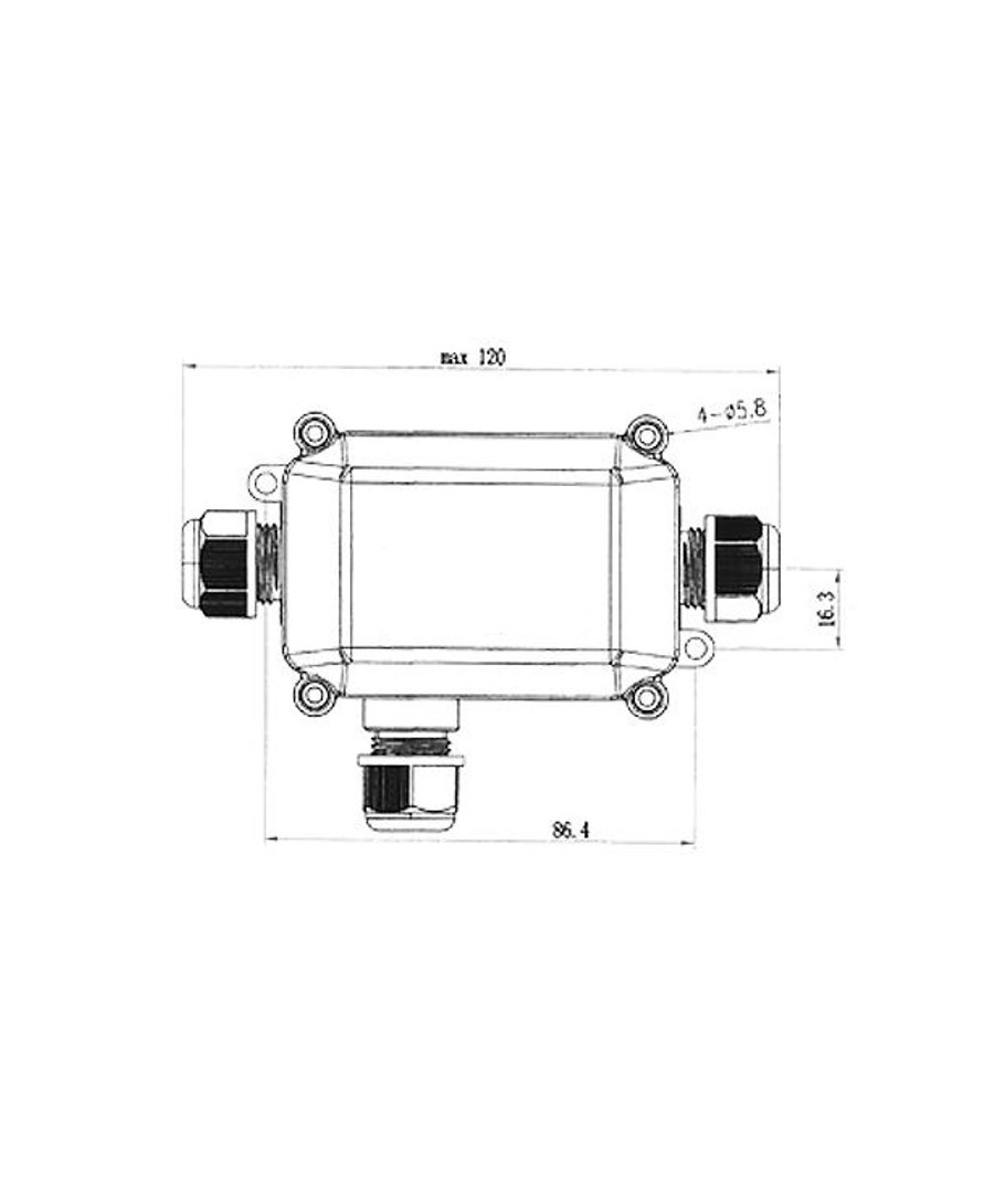 3 vanntette skruer for kabelinnføring og hurtigkoblingshylse.