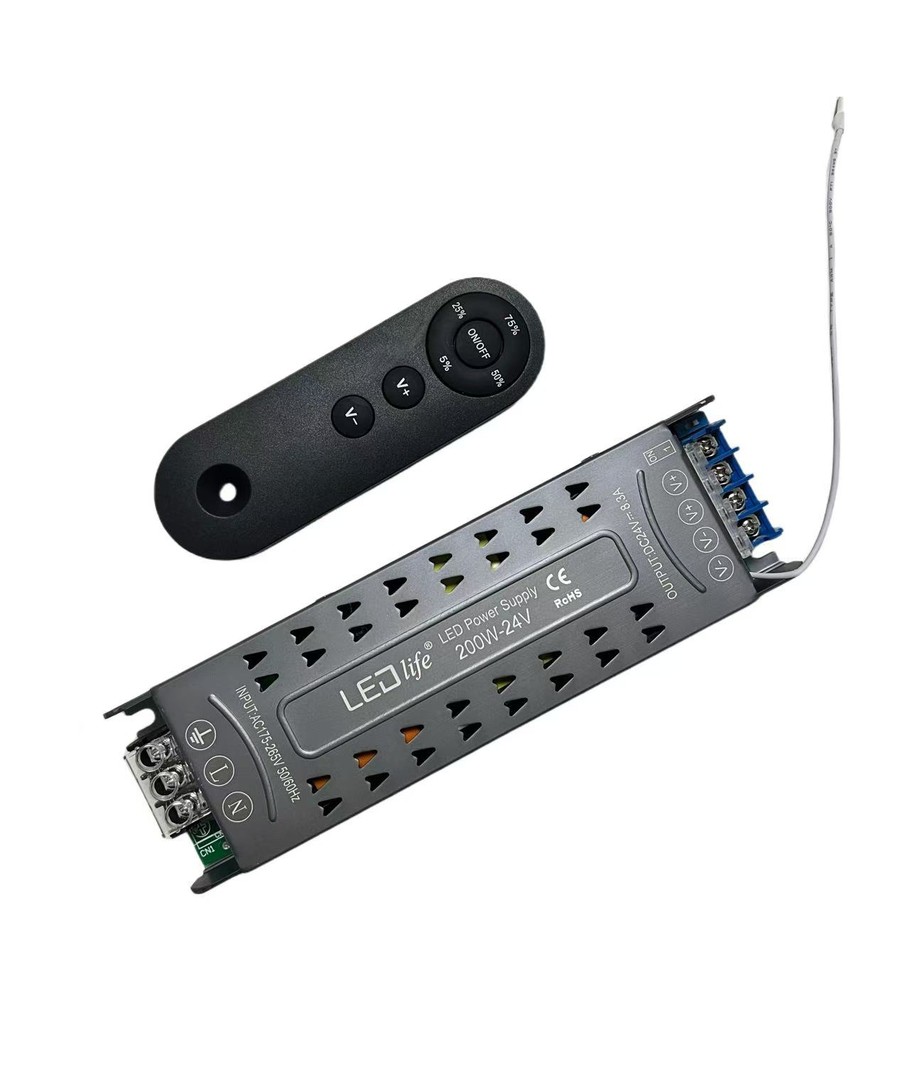 LEDlife 200W dimbar strømforsyning med fjernkontroll - 24V DC, 8.33A, Flimmerfri, IP20 innendørs ledlife Utvid