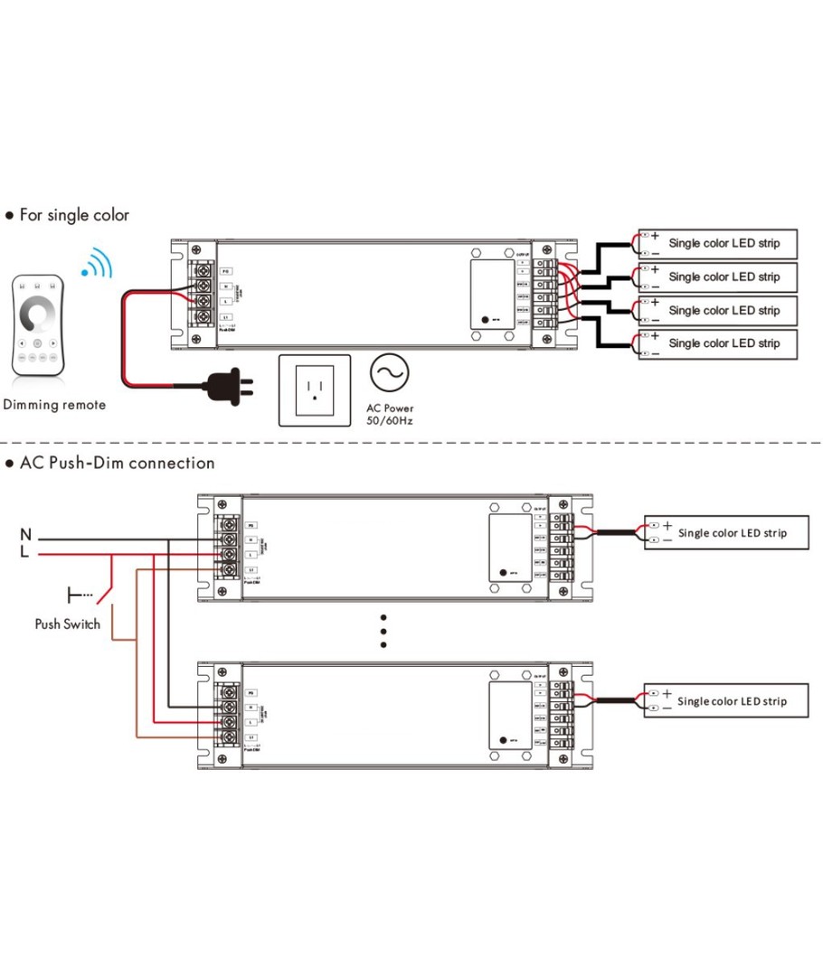 12V DC, 12, 5A, RF, push-dim, 4 kanaler