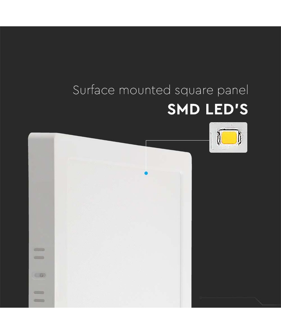 V-Tac 6W LED taklampe - 12,08 x 12,08cm, Høyde: 3,07cm, hvit kant, inkl. lyskilde v-tac Utvid