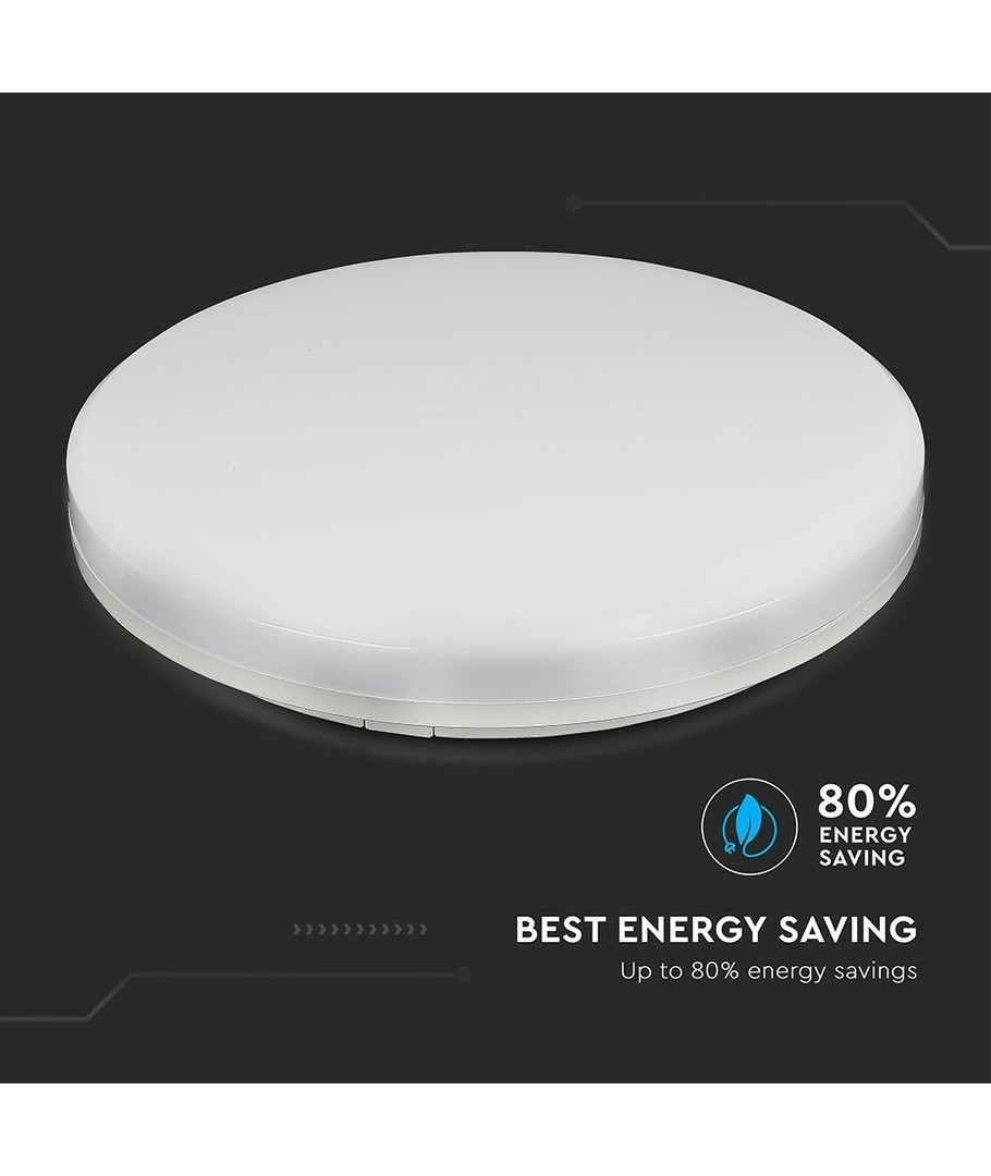 V-Tac rund 15W LED taklampe har et kraftig lyspære som leverer en lysstyrke på 1250 lumen med en høy lysspredning på 120 grader som sikrer en jevn fordeling av lyset.