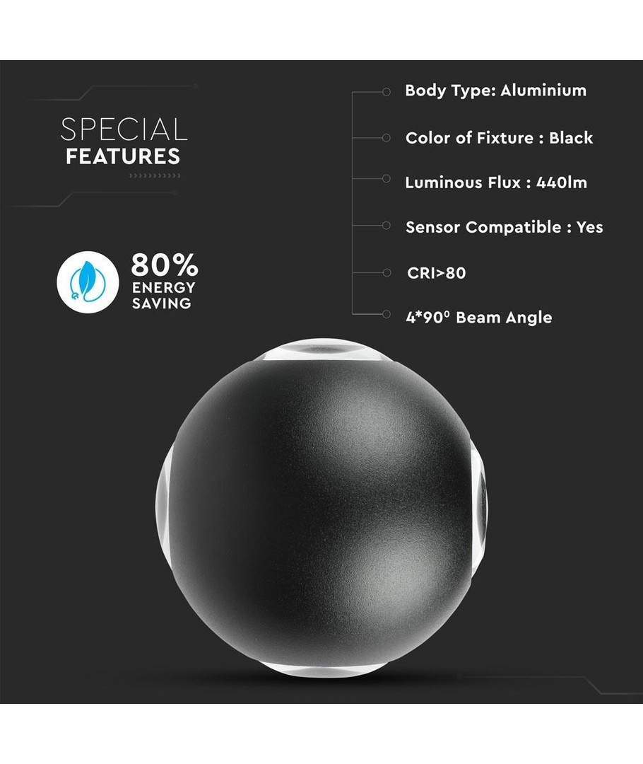 Designet for både estetikk og funksjonalitet, er denne vegglampen et ideelt valg for de som ønsker å forbedre utendørsområder med stilfullt og effektivt lys. Den unike runde formen kombinert med svart finish gir en moderne touch som passer perfekt til alle slags fasader.