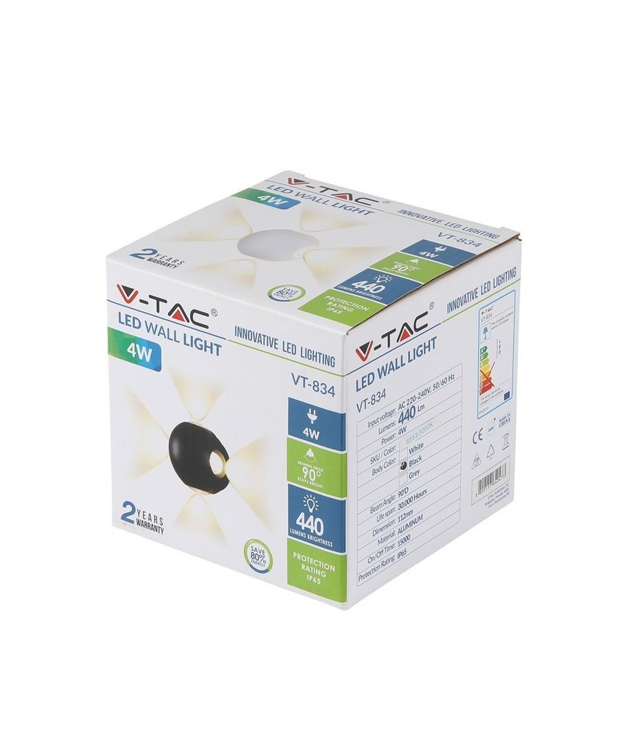 V-tac 4W LED vegglampe tilbyr et lys med en varm hvit fargetone (3000K). Denne fargetonen gir en avslappende og hjemmekoselig atmosfære, perfekt for å skape en innbydende stemning rundt hjemmet ditt.