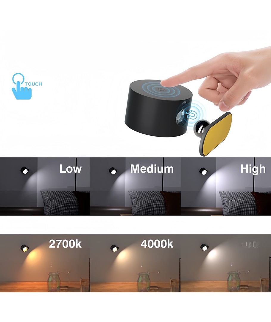 Opplev allsidigheten og funksjonaliteten med vår oppladbare vegglampe i en stilren matt svart finish. Denne lampen er designet for moderne hjem, og kombinerer eleganse med brukervennlige funksjoner.