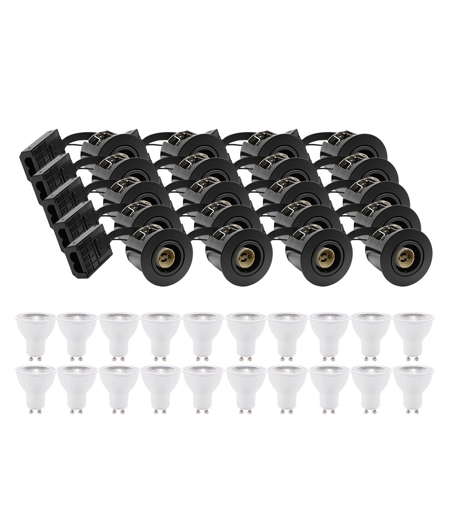 Transformér rommet ditt med 20 stk. innbyggingsspotter utformet for å levere den optimale belysningen du trenger. Disse spottene er utstyrt med 6W GU10 fatning og krever en 230V forsyning for å sikre jevn og pålitelig drift.