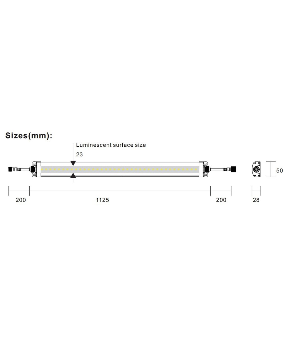 Armaturen er laget for å vare, med dimensjoner på 1125 x 28 x 50 mm og en robust konstruksjon som er IP65-klassifisert. Den kan dermed brukes utendørs, motstå vannsprut og tåle regn uten problemer.