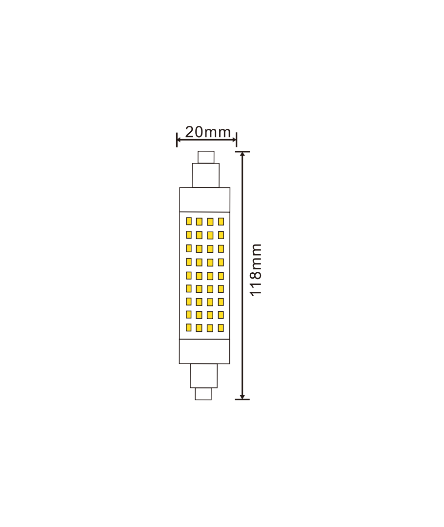 Med dimensjoner på 118 x Ø20 mm passer denne LED-pæren enkelt inn i eksisterende armaturer, noe som gjør oppgraderingen av belysningen til en problemfri oppgave.