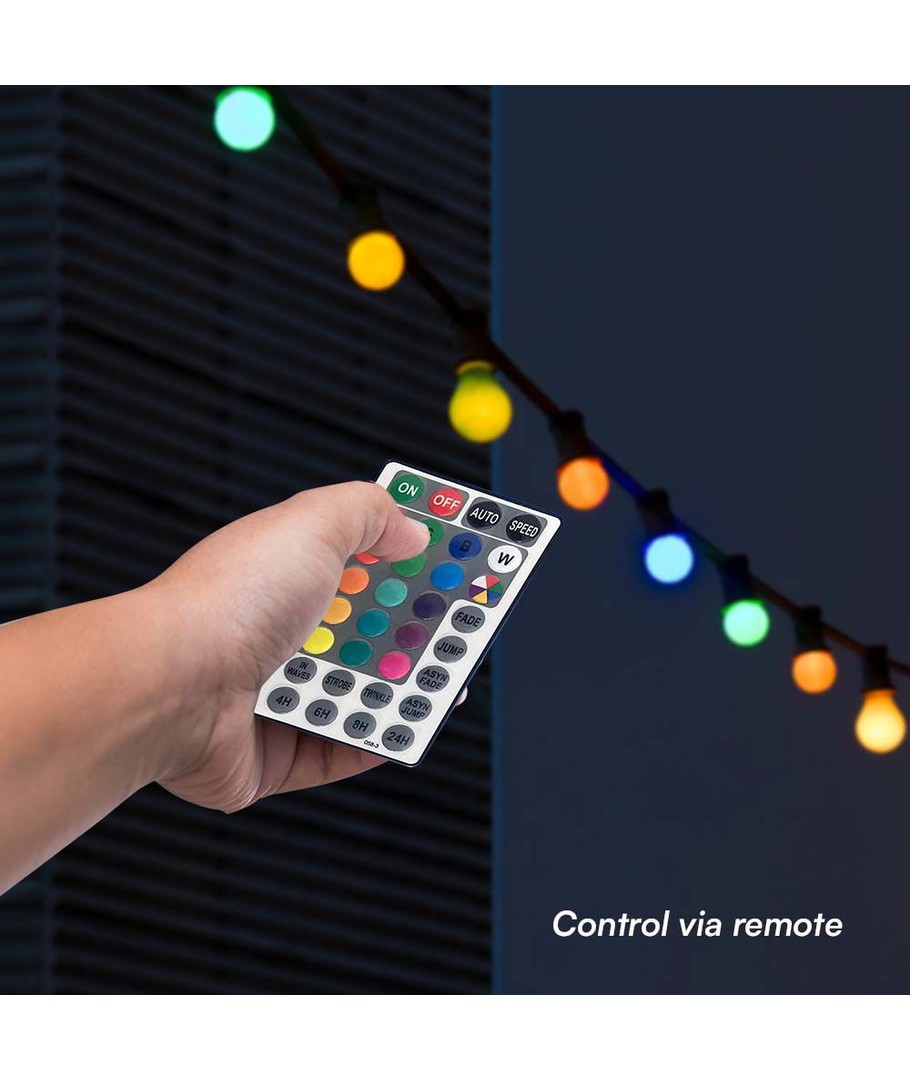 Lys opp hjemmet eller hagen din med denne stilfulle 7 meter lange LED lyskjeden, som kommer med 15 fargerike RGB-pærer. Denne lyskjeden gir en fantastisk effekt med sitt variabelt lys, som kan tilpasses dine behov ved hjelp av den medfølgende fjernkontrollen.