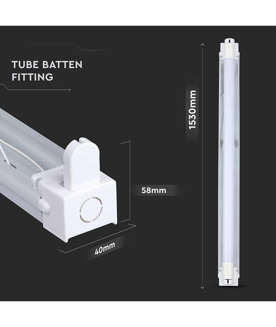 Åpen LED-armatur klar til montering av T8 LED rør.