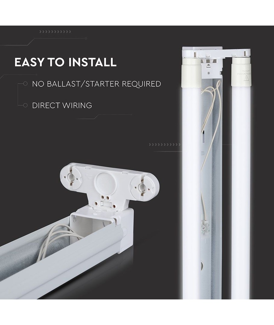 Åpen LED-armatur klar til montering av T8 LED rør.