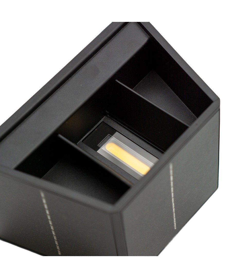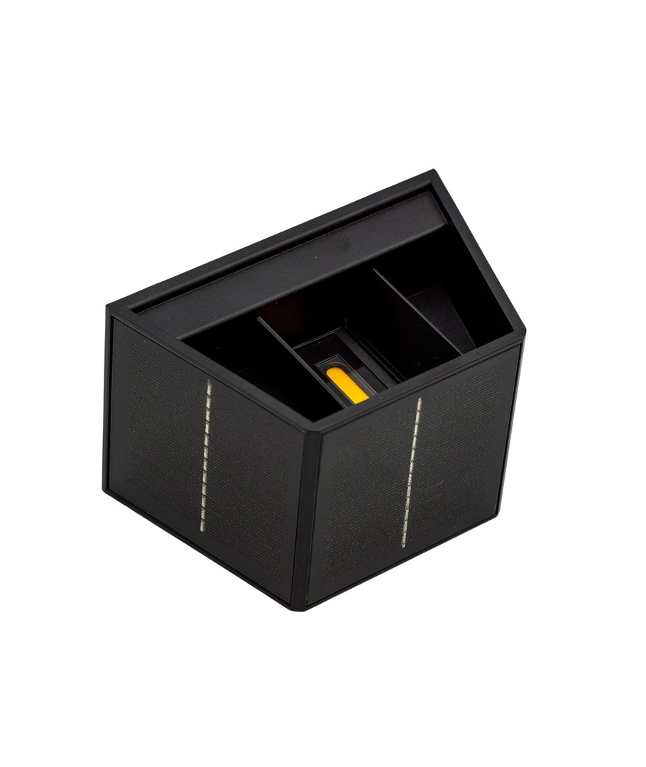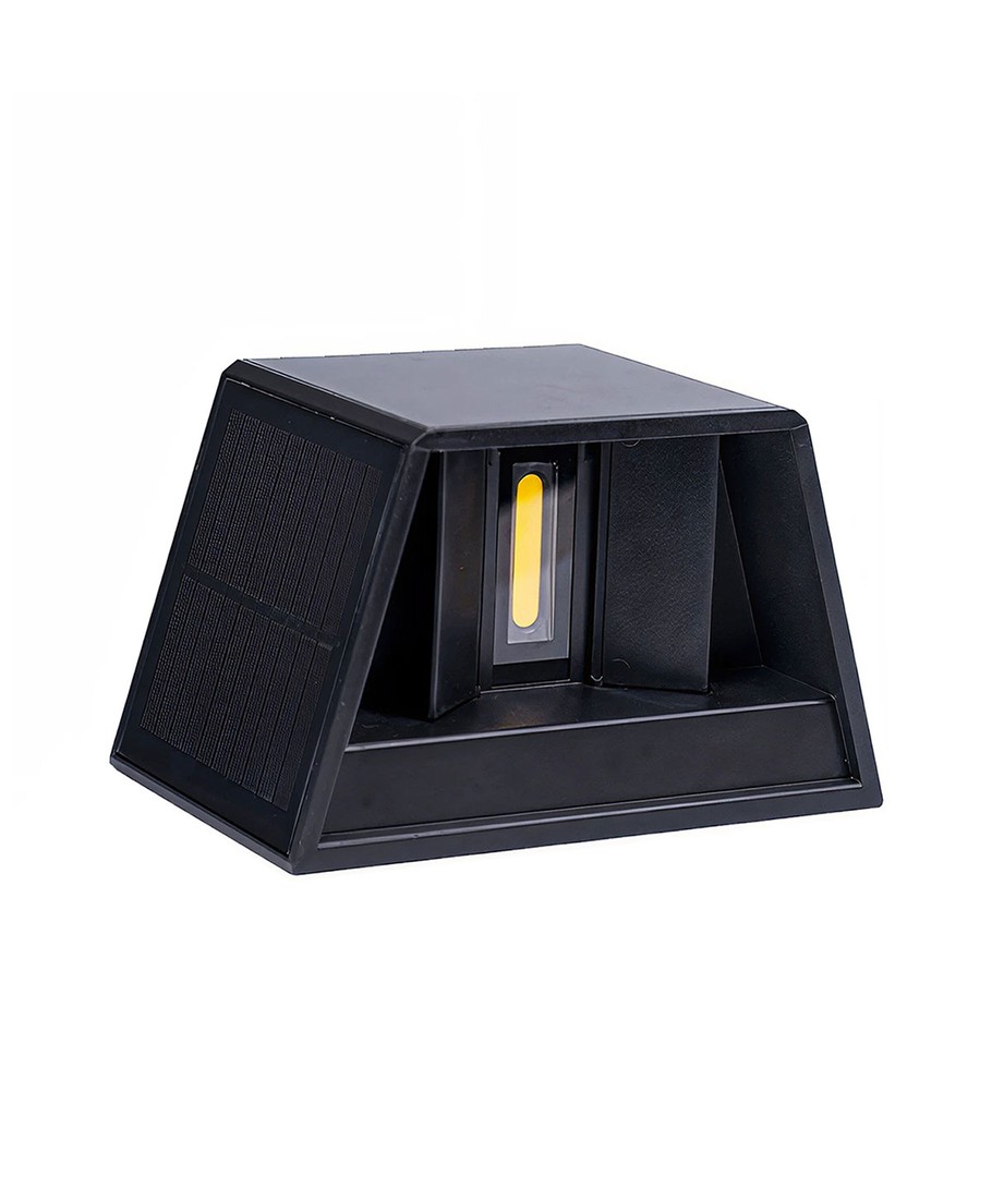 Vår solcelledrevne vegglampe tilbyr en stilfull og funksjonell løsning for utendørs belysning. Den er designet i en elegant svart finish som gir et tidløst og moderne preg til enhver fasade eller terrasse.