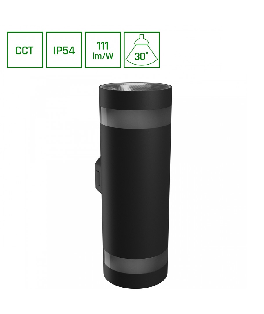 Med en kompakt størrelse på 240 x 99 x Ø78 mm, er denne vegglampen både diskret og effektiv. Den sorte finishen gir et sofistikert utseende som komplementerer en rekke arkitektoniske stiler.