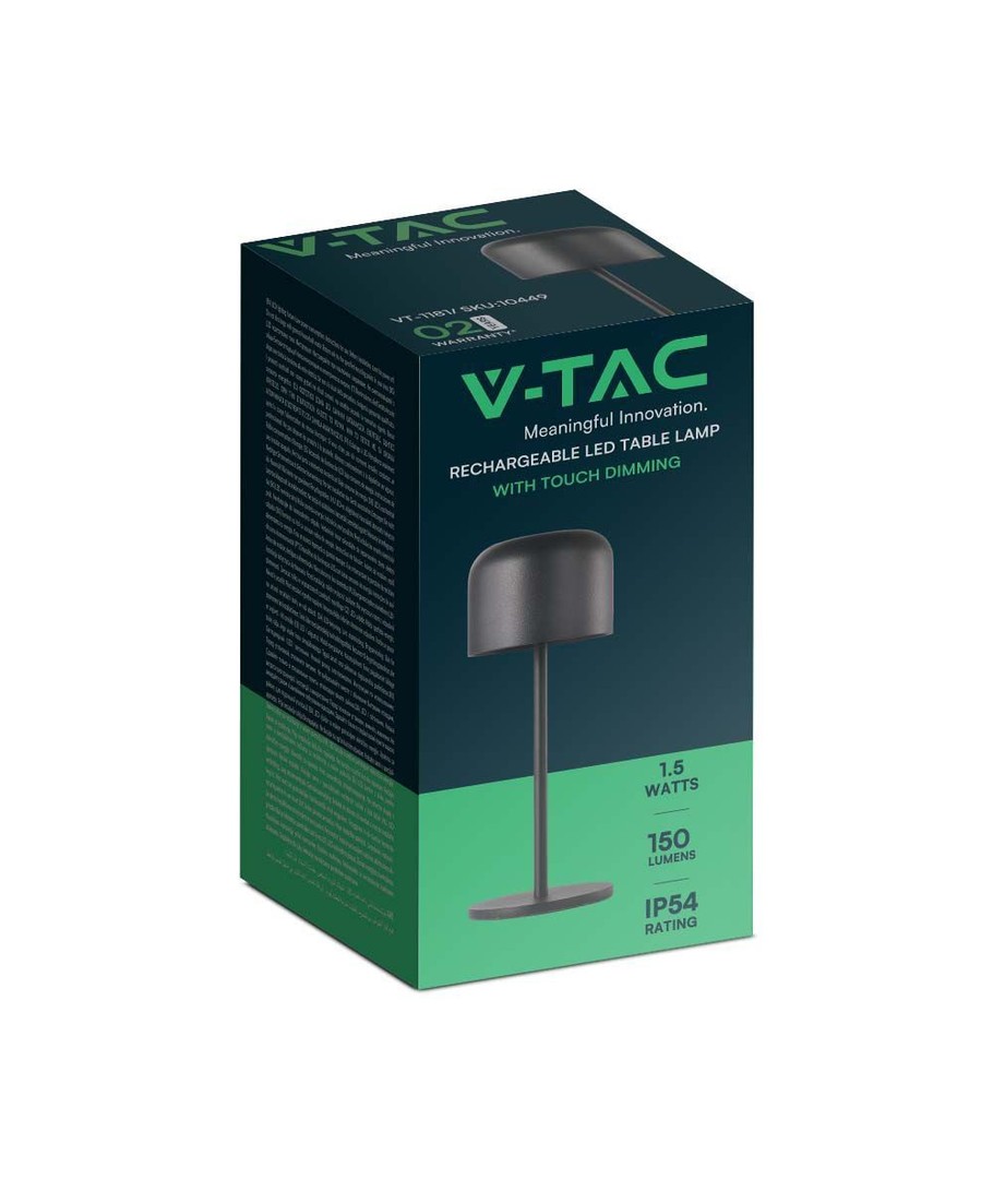 V-Tacs oppladbare CCT bordlampe kombinerer stil og funksjonalitet med praktiske funksjoner som touch dimbar belysning og en motstandsdyktig IP54 design. Enten du ønsker å bruke den som en hovedkilde til lys eller en dekorativ aksent, tilpasser denne lampen seg enkelt til dine behov.