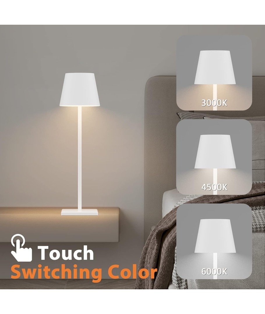 Lampen er berøringsdimbar, noe som gjør det enkelt å tilpasse lysstyrken etter behov. Den kommer med flere justerbare fargetemperaturer: 3000K for en varm og koselig stemning, 4500K for et naturlig dagslys, og 6000K for en kjøligere, mer energisk lyssetting.
