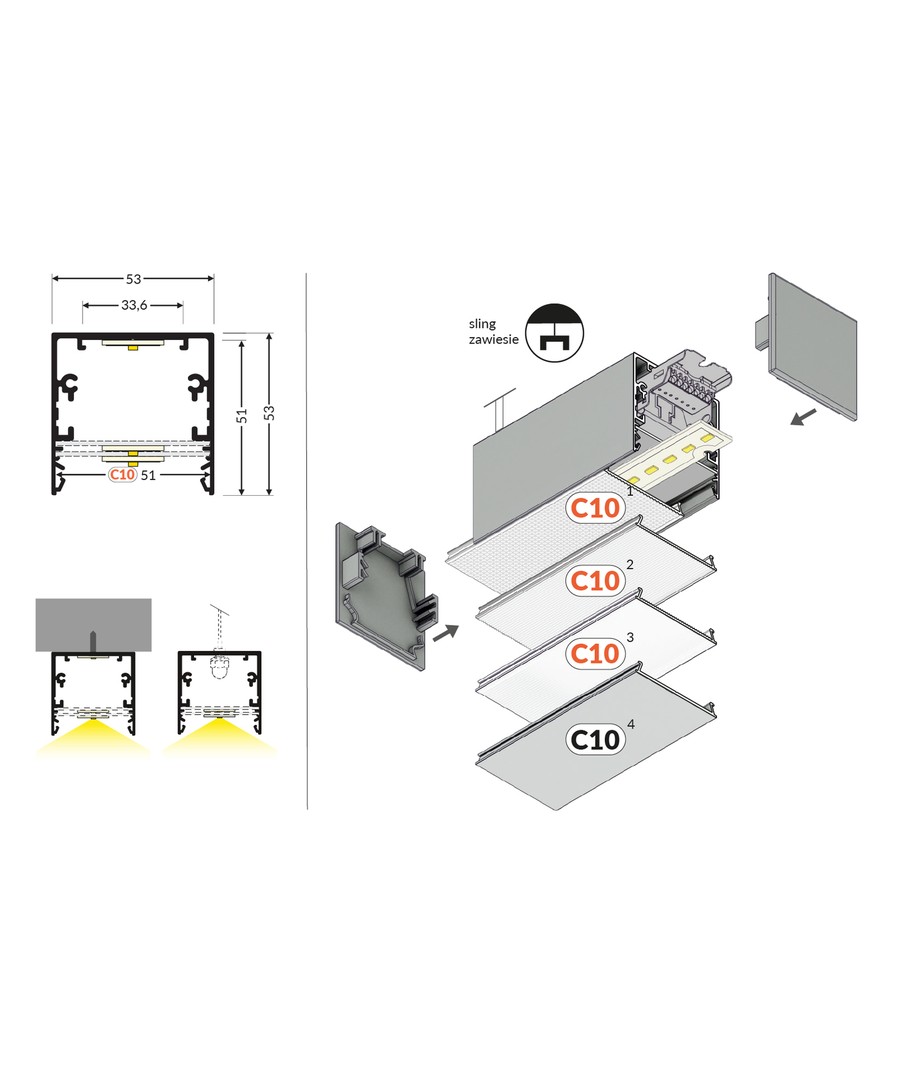 2m aluprofil PHIL53 C10 - Anodisert er en allsidig LED-skinne for påbygging, som er ideell for belysningsprosjekter.
