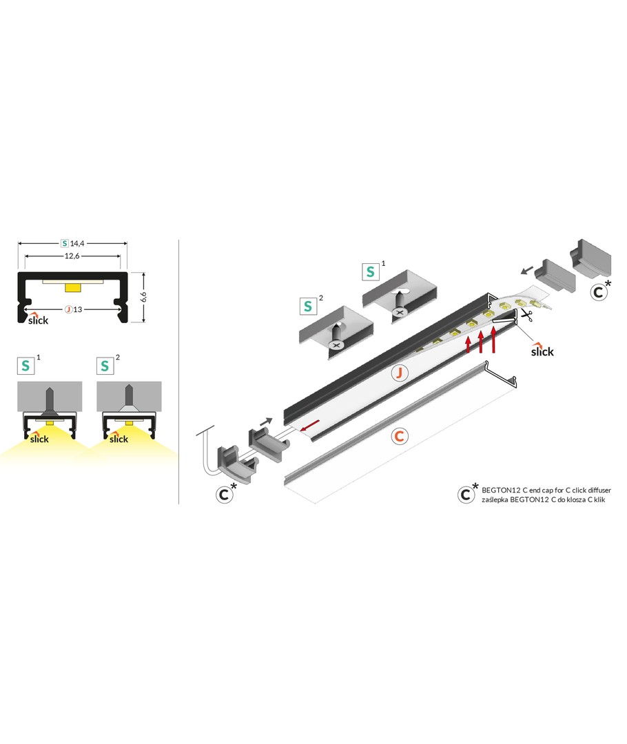 Anodisert, påbygging, LED skinne